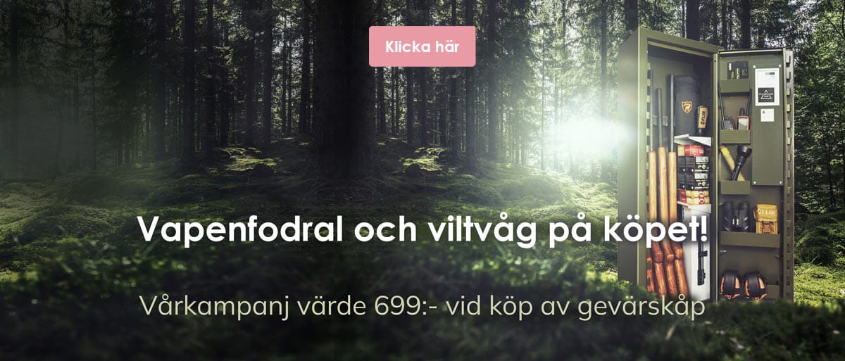 Stor utdragbar vapenvagn med inbyggd förvaringshylla, två justerbara pipstöd till vagnen, fyra justerbara halvhyllor samt två justerbara topphyllor och en LED-lampa ingår i paketet.